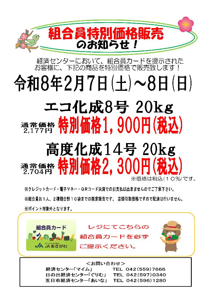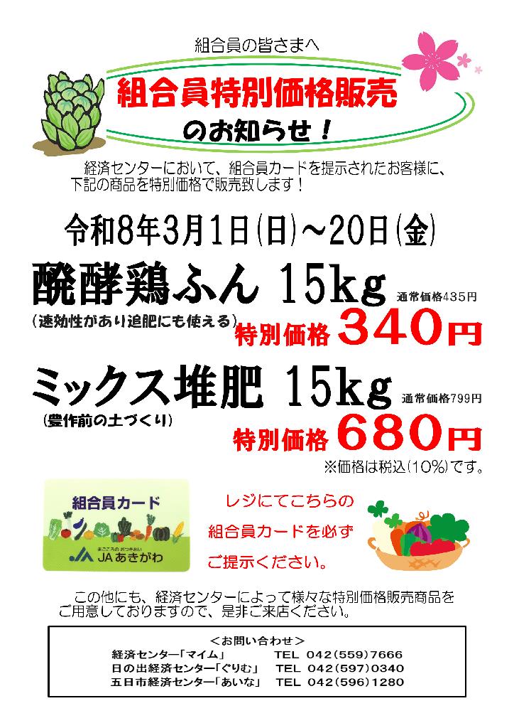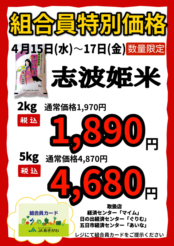 各経済センターの組合員特別価格商品です。 ※組合員特別価格商品の為、組合員カードのご提示をお願いいたします。