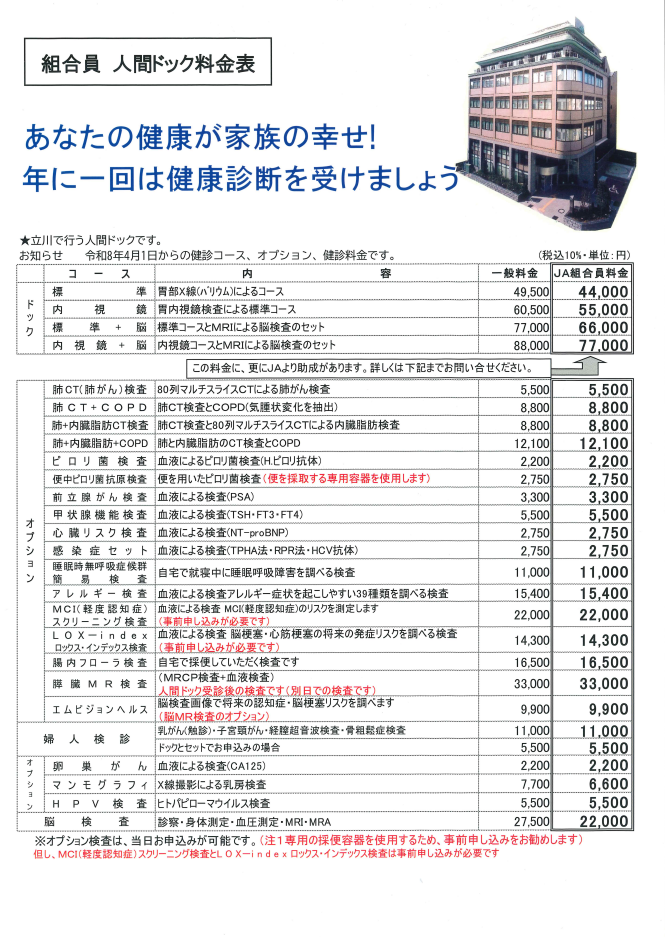 JA東京健康管理センター(立川市)での日帰り人間ドックです。