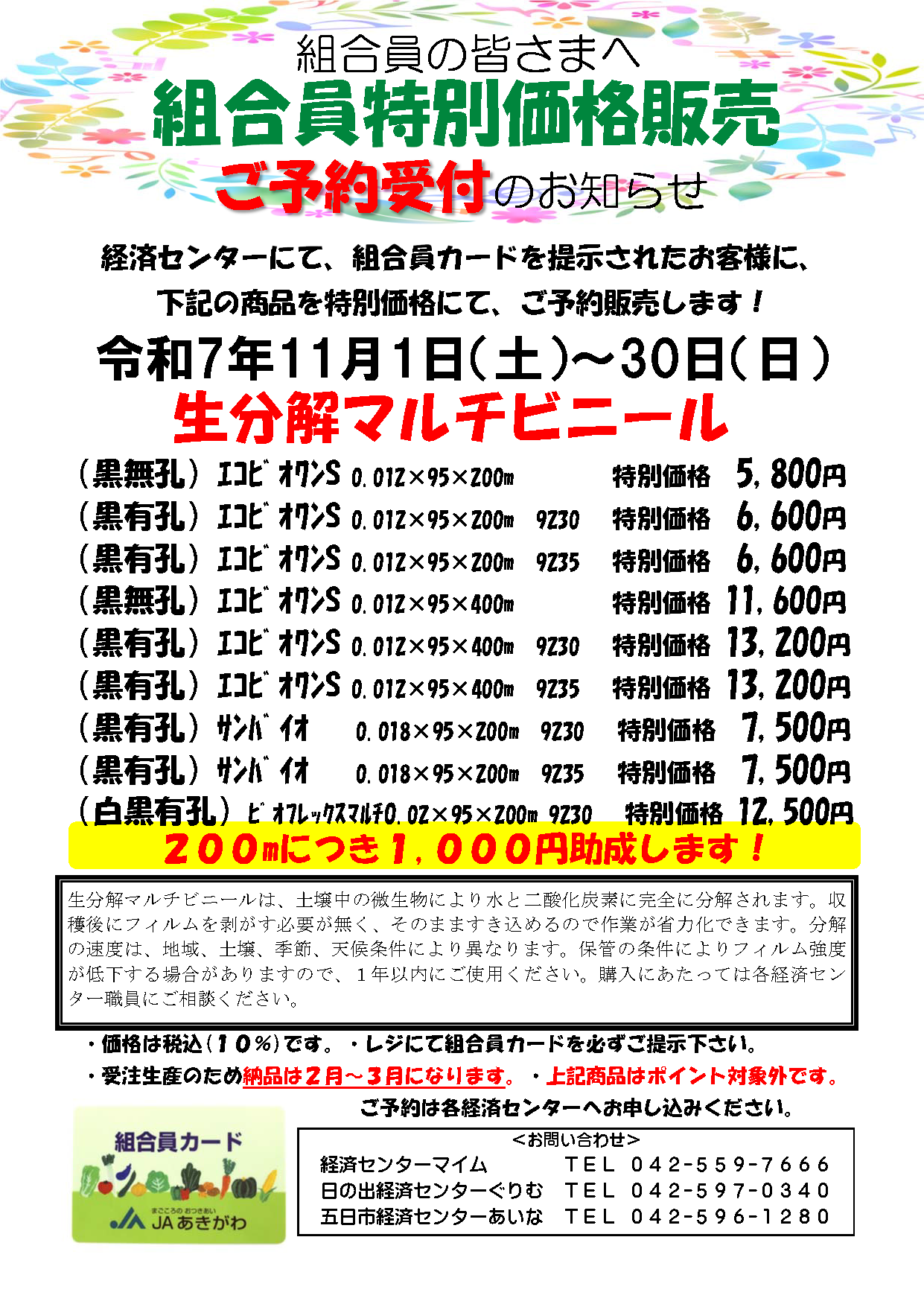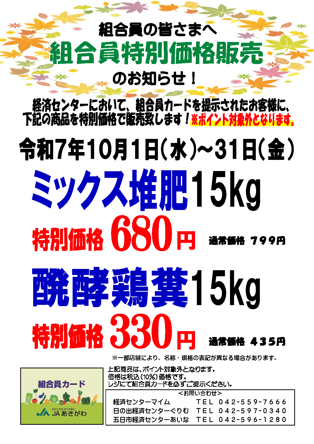各経済センターの組合員特別価格商品です。 ※組合員特別価格商品の為、組合員カードのご提示をお願いいたします。